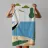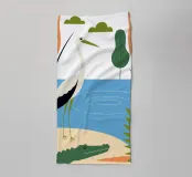 Scoprite la bellezza della natura con un tocco di umorismo in questa opera d'arte con una cicogna e un coccodrillo come amici. I colori vivaci e i disegni unici creano un'atmosfera fresca e divertente.