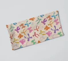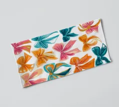 Un motivo giocoso di fiocchi colorati in rosso, rosa, verde acqua, verde lime e pesca, sparsi su un morbido sfondo color pesca con accenti di stelle bianche. Questo disegno allegro e festoso dona un fascino stravagante, perfetto per aggiungere un tocco femminile e gioioso al vostro spazio. Ideale per confezioni regalo, decorazioni ispirate alla moda o per chiunque ami un motivo audace ma delicato. Creato da showmemars
