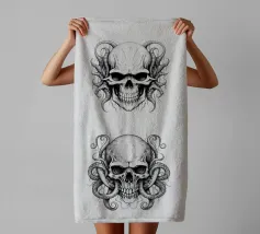 Diversi teschi sono appesi in una ragnatela di ragnatele e rami spinosi. La scena è in bianco e nero e appare oscura e misteriosa per la ricchezza dei dettagli. Un motivo a metà tra l'incubo e l'opera d'arte.