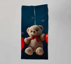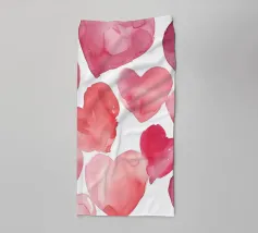 Un filo ornato da ritagli a forma di cuore in varie tonalità di rosso è appeso su uno sfondo scuro. Morbide luci calde illuminano i cuori, creando un'atmosfera romantica per San Valentino.