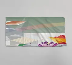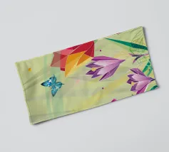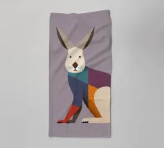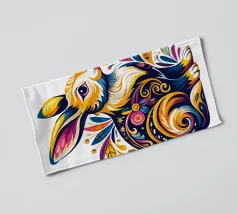 Due coniglietti pasquali stilizzati tra fiori colorati, pulcini e farfalle: un motivo allegro in stile poligonale, ideale per il periodo pasquale e l'inizio della primavera.