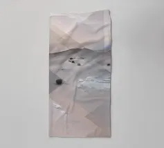 Un terreno da sogno cucito dal tempo e dal mito: All At Once fonde tre paesaggi iconici in un mondo surreale e senza luogo. Il tranquillo specchio del Monte Fuji di Kashiwabara (1896, Kazumasa Ogawa) si innalza nella silhouette delle Piramidi di El-Geezeh di Frith del 1858, il tutto coronato dalle eteree dune di White Sands, nel Nuovo Messico, catturate dalla NASA. Insieme, queste scene dissolvono la geografia e la cronologia per evocare una tranquilla meraviglia cinematografica, dove vulcani e faraoni si incontrano davanti a dune simili a nuvole. Un portale per il muro e un pellegrinaggio per l'occhio.