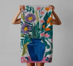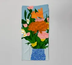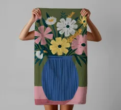 Questo allegro motivo floreale mostra un vaso blu stilizzato pieno di fiori colorati in arancione, rosso, giallo e rosa, incorniciato da una calda tonalità corallo. Il disegno irradia gioia di vivere e armonia ed è perfetto per murales, cuscini, tazze, cover per cellulari e altro ancora. Ideale per chi ama un'estetica fresca e moderna e desidera ravvivare la propria casa con accenti colorati e naturali. Questa composizione floreale senza tempo si adatta a qualsiasi ambiente e a qualsiasi stile di casa.