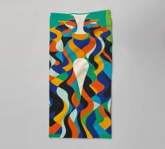 Un audace motivo astratto con un tocco di energia dinamica che simboleggia il movimento e la fluidità. Colori vivaci che evocano temi come l'acqua, la vita e il movimento. Una fusione innovativa di tradizione e modernità per interni contemporanei e minimalisti. Un linguaggio visivo unico che supera i confini culturali.