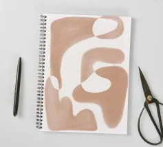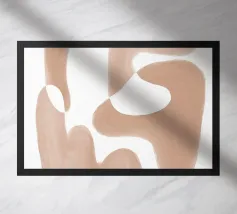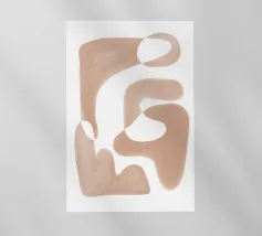 Fluido disegno astratto caratterizzato da diverse forme irregolari e curve di colore marrone, collegate tra loro da spazi bianchi, che creano un senso di movimento e continuità organica su uno sfondo neutro.