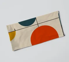 L'opera d'arte presenta una disposizione dinamica di forme geometriche dai colori vivaci. Cerchi, rettangoli e linee si intrecciano, creando un senso di movimento ed equilibrio.