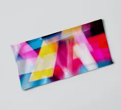 Forme geometriche dai colori vivaci sono disposte in un motivo accattivante. La composizione presenta quadrati e rettangoli di vari colori, creando un gioioso impatto visivo.