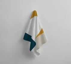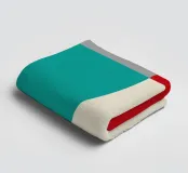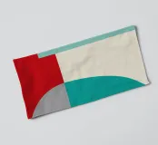 Un'audace composizione astratta con forme geometriche nei toni del rosso, del verde acqua, del grigio e del beige. Il design è semplice e moderno e mette in risalto il contrasto di colori.