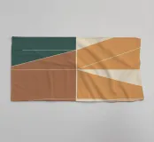 Una composizione astratta di forme geometriche in toni terrosi e tenui, disposte con equilibrio su uno sfondo chiaro.