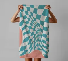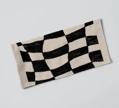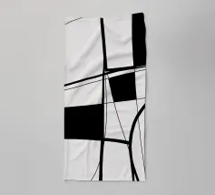 Audaci motivi geometrici si intrecciano con un sorprendente accento giallo in un design che enfatizza il contrasto. Le forme curve e angolari in bianco e nero creano un flusso visivo dinamico.