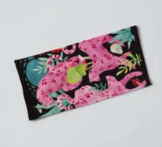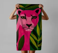 Questo non è un normale safari. È un'avventura rosa ambientata in una lussureggiante foresta tropicale, dove gatti, tigri, leopardi, zebre, giaguari e ghepardi vivacizzano le decorazioni murali con un tocco pop-art. In questo quadro dalle linee raffinate, un ghepardo rosa acceso si adagia tra il fogliame verdeggiante, lasciando che la sua tonalità vivace sia al centro della scena. Le foglie tropicali creano un contrasto sorprendente, rendendo questo pezzo un'attrazione immediata per il salotto o lo studio creativo.