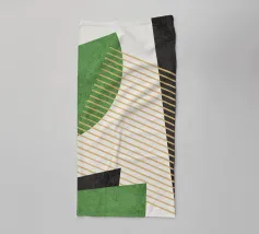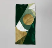 Un'opera d'arte astratta moderna che cattura la tensione poetica tra il sole e la luna, composta da audaci forme geometriche in verde bosco profondo, oro caldo e avorio morbido. Questo pezzo elegante conferisce un'aura mistica e senza tempo a qualsiasi spazio, ideale per gli amanti del design minimalista con sfumature simboliche.