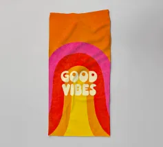 good vibes art, design arcobaleno rosa, estetica retrò, grafica allegra, messaggio edificante, stile minimalista colorato