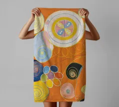 Questa vivace stampa d'arte presenta "The Ten Largest (No.3), Youth" di Hilma af Klint, un'ipnotica opera astratta del 1907. Su un caldo sfondo arancione, la composizione è un ricco arazzo di spirali vorticose, cerchi concentrici e forme organiche in una variegata tavolozza di gialli, blu, rosa e viola. Quest'opera mostra la visione spirituale e astratta pionieristica di Klint, che esplora i temi della crescita e dello sviluppo attraverso un intricato simbolismo. Questo poster digitale di alta qualità (7000x5000 pixel, 300 dpi) cattura magnificamente la bellezza eterea e la maestria innovativa dell'opera di Klint.