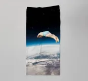Un collage surreale che fonde il corpo umano con la vastità cosmica. Un tuffatore sospeso sopra la Terra trasforma il salto in una metafora di coraggio, libertà ed esplorazione dell'ignoto. Il contrasto tra la figura atletica e il cosmo infinito crea un'immagine suggestiva che unisce minimalismo e immaginazione onirica. Perfetto per chi apprezza l'arte moderna con un tocco surreale e cosmico.