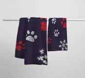 Impronte di zampe con impronte di zampe e fiocco di neve sfondo navy