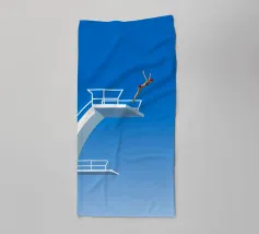 Donna che fotografa un uomo in procinto di saltare in piscina. Cielo aura sfumato e citazione 'Non è così profondo'. Surreale design retrò con piscina di motel vintage di MsGonzalez