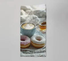 Un cappuccino preparato ad arte con latte art a forma di cuore è al centro di questa calda opera d'arte. La tazza fumante e i chicchi sparsi tutt'intorno creano un'atmosfera accogliente e quasi sensuale. Ideale per chi non si limita a bere il caffè, ma lo celebra. Perfetto per i bar, i baristi o come complemento di stile per la cucina.
