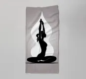 La silhouette di una donna seduta in meditazione con l'energia bianca che scorre intorno a lei. Il contrasto tra luce e buio riflette la consapevolezza e la chiarezza spirituale: perfetto per gli studi di yoga o per le case serene.