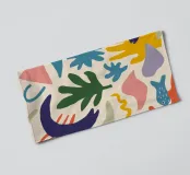 Una composizione astratta stravagante e onirica con un serraglio di forme che suggeriscono mani, pesci, foglie e una luna crescente. L'opera d'arte è fantasiosa, giocosa e ha una qualità delicata e fiabesca.