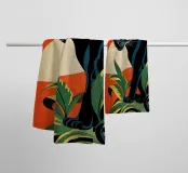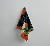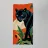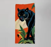 Questo potente disegno raffigura una pantera nera su uno sfondo arancione brillante: un simbolo di forza, eleganza e tranquillità. La composizione chiara di colori audaci e forme grafiche vegetali ricorda le illustrazioni vintage degli anni Sessanta.