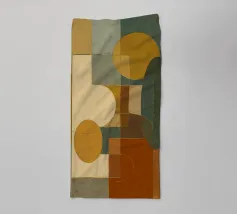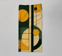 Composizione minimalista di metà secolo con forme geometriche semplici e colori accoglienti, tra cui arancione, marrone, beige e verde acqua, che evocano l'evoluzione del sole in una luminosa giornata autunnale. Con i suoi toni caldi, quest'opera d'arte retrò è in grado di ravvivare qualsiasi ambiente. Una scelta perfetta per case, uffici e hotel. Parte di un duo.