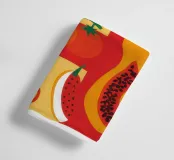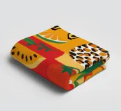 Una composizione vivace e generosa di vari frutti tropicali stilizzati come ananas, papaya e anguria. L'opera d'arte è una celebrazione colorata e gioiosa delle dolci offerte esotiche della natura.