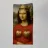 Monna Lisa indossa un buffo maglione natalizio e un cappello con corona di carta natalizia. Sul suo pullover natalizio ci sono due pudding natalizi e un albero di Natale alle sue spalle.