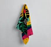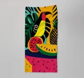 Questa composizione accattivante combina flora, fauna e frutta per creare una festa visiva. L'intensa tavolozza - turchese brillante, giallo radioso, rosa ricco e verde intenso - ricorda i sogni della giungla di Henri Rousseau. Il maestoso tucano siede in trono come un re sopra il suo regno tropicale tra foglie di monstera, ananas e meloni. La riduzione grafica e i contorni decisi mostrano influenze della moderna cartellonistica. Ogni elemento pulsa di energia e gioia di vivere. Un'opera che risveglia immediatamente la voglia di viaggiare e trasforma qualsiasi stanza in un rifugio tropicale.