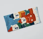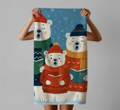 Questa simpatica illustrazione raffigura tre orsi polari che cantano o cantano insieme. Gli orsi sono vestiti con caldi maglioni natalizi, cappelli e sciarpe. Ogni orso tiene in mano un libro di canti natalizi, mentre cantano insieme secondo la tradizione delle festività invernali.