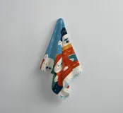 Una collezione di opere d'arte colorate a tema natalizio esposte con allegria.