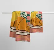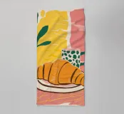 Un'affascinante natura morta di un croissant fresco su un piatto, abbinato a forme botaniche astratte su uno sfondo rosa. L'opera celebra il piacere semplice e delizioso di una colazione in stile parigino.