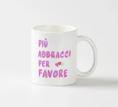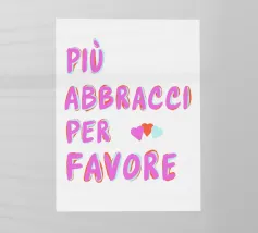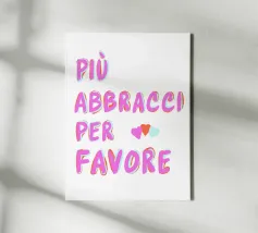 "Più abbracci per favore" è un'opera d'arte minimalista che irradia amore e gioia. La grande tipografia colorata in rosa, arancione e bianco invita a un caldo abbraccio. Perfetto per portare un'atmosfera allegra in ogni stanza.
