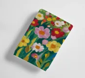 Un paesaggio impressionistico cattura un prato mozzafiato di fiori selvatici colorati che sbocciano su una scogliera che si affaccia su un mare azzurro e sereno sotto un cielo estivo, creando una scena di pura bellezza naturale.