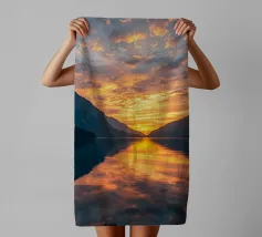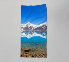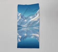 Un cielo azzurro e limpido si riflette perfettamente in un lago sereno circondato da maestose montagne innevate. Questa splendida scena cattura l'essenza della bellezza e della tranquillità della natura.