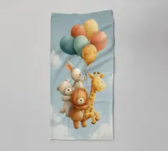 Una magica illustrazione verticale che cattura un momento stravagante, mentre un gruppo di coniglietti si prepara al lancio di un razzo alimentato da un palloncino. Ambientata su una piattaforma di legno sotto un cielo da sogno, la scena fonde ingegneria, fantasia e lavoro di squadra in toni pastello. Perfetto per la stanza di un bambino o di chiunque sogni l'esplorazione e l'avventura con un fascino morbido e pittorico.