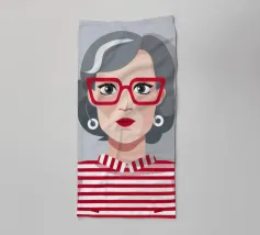 Illustrazione caricaturale umoristica della nota giurista americana, giudice associato della Corte Suprema degli Stati Uniti, Ruth Bader Ginsburg. Una delle caricature realizzate per la serie Celebrity Sunday, in cui un personaggio famoso viene ritratto in un giorno. L'idea è di mostrarli come in una fototessera per avere coerenza.