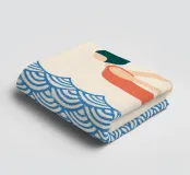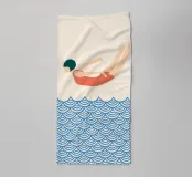 Questa immagine artistica mostra una donna stilizzata in costume da bagno rosso che si tuffa elegantemente in mare: un simbolo di libertà, leggerezza e sensazione estiva. Le forme chiare, le onde blu e i tenui colori pastello conferiscono al motivo un fascino moderno e retrò in stile metà secolo. Perfetto per gli amanti dell'arte minimalista, dell'estetica vintage e dei momenti estivi mediterranei.