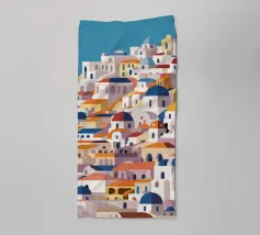 Poster minimalista in bianco e blu di Santorini, in Grecia, con l'iconica architettura cicladica con chiese a cupola, scale a chiocciola e fascino mediterraneo. Questa opera d'arte serena ed elegante cattura la bellezza senza tempo delle isole greche ed è perfetta per gli amanti dei viaggi e dell'arredamento costiero.