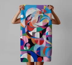 Un audace motivo astratto con un tocco di energia dinamica che simboleggia il movimento e la fluidità. Colori vivaci che evocano temi come l'acqua, la vita e il movimento. Una fusione innovativa di tradizione e modernità per interni contemporanei e minimalisti. Un linguaggio visivo unico che supera i confini culturali.
