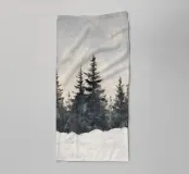 Un dipinto invernale d'atmosfera che cattura la semplice bellezza della natura. Abeti rossi scuri si stagliano contro un cielo grigio e soffice, mentre il terreno riposa sotto una spessa coltre di neve. La struttura fine delle pennellate conferisce al dipinto profondità e un'atmosfera tranquilla. Questa scena ricorda la forza tranquilla dell'inverno, quei momenti in cui il mondo si riposa.