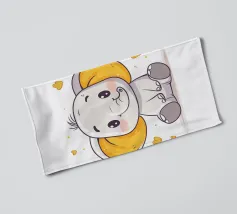 Un simpatico e soffice mostro giallo con corna colorate e grandi occhi: un motivo allegro per i bambini e gli appassionati di disegni kawaii.