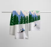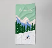 "Ski you later": un gioco di parole che unisce sport invernali e umorismo. L'illustrazione mostra uno sciatore su una pista bianca, incorniciata da abeti verde intenso e montagne color pastello. Un'immagine che cattura la leggerezza dello sci e allo stesso tempo evoca un sorriso. Perfetta per chi ama l'inverno, le montagne e il buon umore. Moderna, giocosa e un vero e proprio eye-catcher per la stagione invernale.