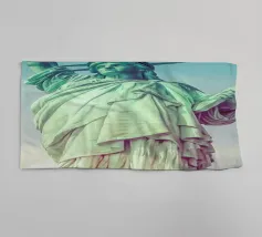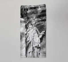 Questa affascinante fotografia in bianco e nero mostra l'iconica Statua della Libertà contro l'imponente skyline di Manhattan, simbolo di libertà e democrazia. Con un design elegante, l'opera d'arte combina l'estetica moderna con la bellezza senza tempo di questo famoso simbolo e aggiunge un tocco di raffinatezza a qualsiasi ambiente.
