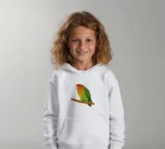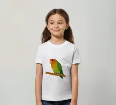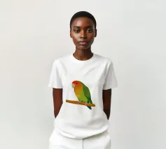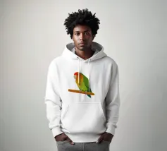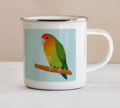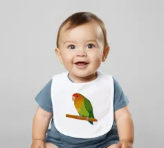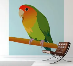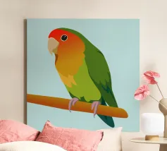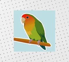 Illustrazione digitale di un simpatico inseparabile dalla faccia di pesca appollaiato su un bastone.