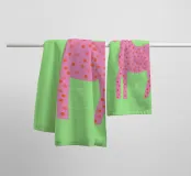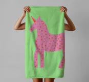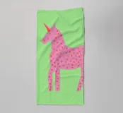 Questa giocosa illustrazione mostra un unicorno rosa con puntini su uno sfondo arancione e verde, perfetto per le camere dei bambini o per le decorazioni estive. La grafica dipinta a mano combina elementi fantasiosi con un design minimalista e crea un'atmosfera allegra che irradia gioia e creatività.