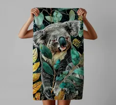 Comica illustrazione di un koala che si gode gli effetti della sua solita pianta di eucalipto. In modo meno tradizionale.