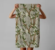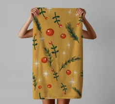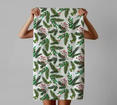 Un morbido motivo botanico dipinto a mano con rami di pino invernale e delicate bacche di neve bianche. Le calde tonalità del beige si fondono con espressivi tratti pittorici per creare un disegno stagionale sereno e naturalmente elegante. Perfetto per aggiungere un'atmosfera invernale e rilassante a qualsiasi interno moderno.