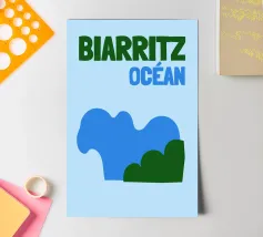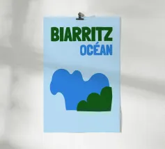 Abbracciate il fascino dell'Atlantico con questo poster da viaggio "Biarritz Océan", immerso in rinfrescanti tonalità di blu e verde. Il testo verde "BIARRITZ" e la scritta blu "OCÉAN" (Oceano) sono posizionati sopra forme astratte e organiche che rappresentano le onde e il lussureggiante paesaggio costiero di Biarritz. Questo design minimalista ma evocativo cattura l'essenza di questa rinomata destinazione per il surf sulla costa basca. Perfetta per aggiungere un tocco di sereno fascino costiero e di vagabondaggio a qualsiasi spazio, questa stampa digitale di alta qualità è disponibile in un'impressionante risoluzione di 7000x5000 pixel a 300 DPI, garantendo un'eccezionale nitidezza.