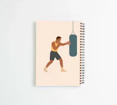 Design minimalista di un pugile che si allena. Rappresentazione stilizzata decorativa di un pugile maschio che colpisce un sacco da boxe. Bella idea regalo per tutti coloro che amano la boxe e le arti marziali come sport e hobby.